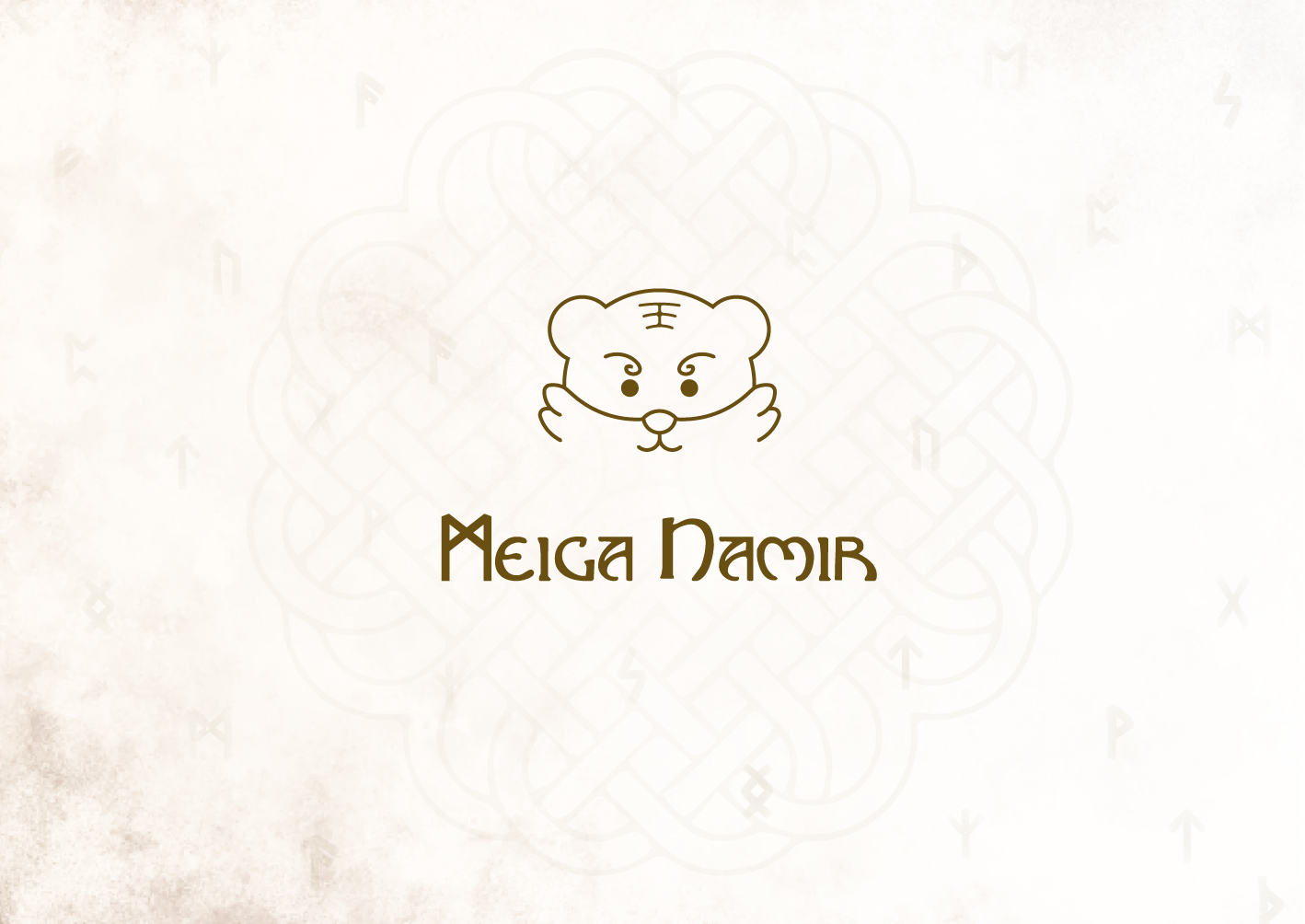 Nos inspiramos en el tigre chino para representar los valores de sostenibilidad, conexión con la naturaleza y la cultura celta y medieval que caracterizan a Meiga Namir. Logotipo con tipografía antigua y letras del alfabeto celta para reflejar la cultura de Meiga Namir.
